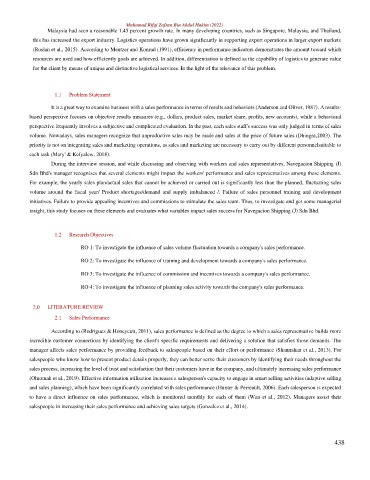 insight, this study focuses on these elements and evaluates what variables impact sales success for Navegacion Shipping (J) Sdn Bhd.