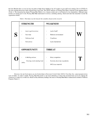 the store opening hours have been reduced from 6 am-8 pm. The SWOT analysis of Warung Mak Mah is depicted in the quadrant below
