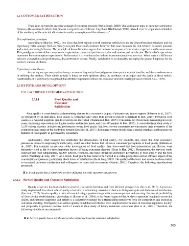 consumption experience, particularly about levels of satisfaction (Ha & Jang, 2012). The quality of the food and service has been linked