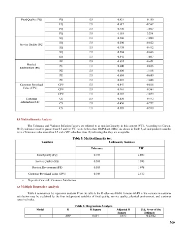 The Tolerance and Variance Inflation Factors are referred to as multicollinearity in this context (VIF). According to (Garson,