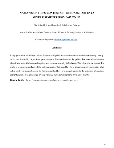 ANALYSIS OF VIDEO CONTENT OF PETRONAS HARI RAYA