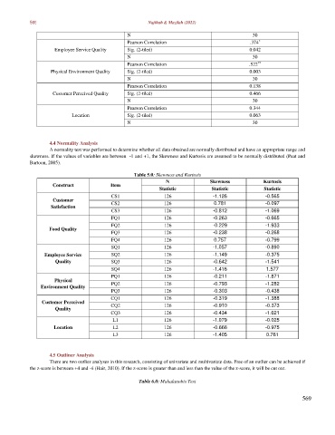the z-score is between +4 and -4 (Hair, 2010). If the z-score is greater than and less than the value of the z-score, it will be cut out.