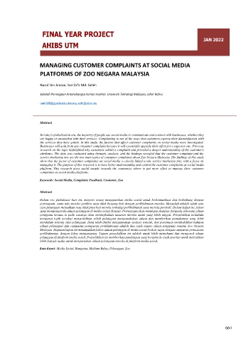 Kata Kunci: Media Sosial, Rungutan, Maklum Balas, Pelanggan, Zoo