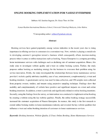 Keywords: Booking Intention, Website Quality, E-Trust, Online Booking, Home Maintenance Services