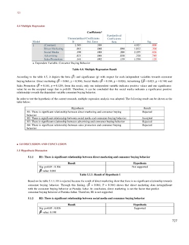 Table 4.4: Multiple Regression Result
