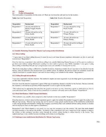 From the interview, respondent 1 also said direct selling is the suitable Marketing Channel because it will be easier to retailers to