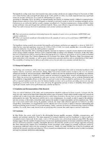 customer satisfaction. As a result, the null hypothesis is rejected.