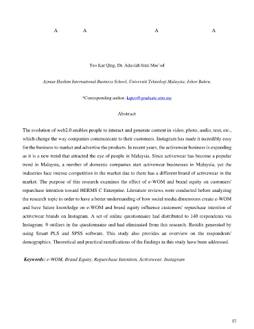 Keywords: e-WOM, Brand Equity, Repurchase Intention, Activewear, Instagram