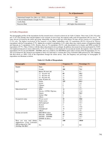 Table 4.2: Profile of Respondents
