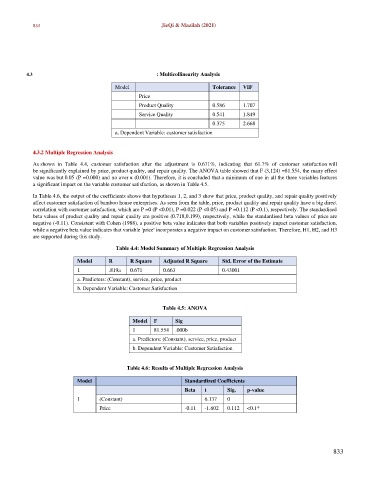 be significantly explained by price, product quality, and repair quality. The ANOVA table showed that F (3,124) =81.554, the many effect