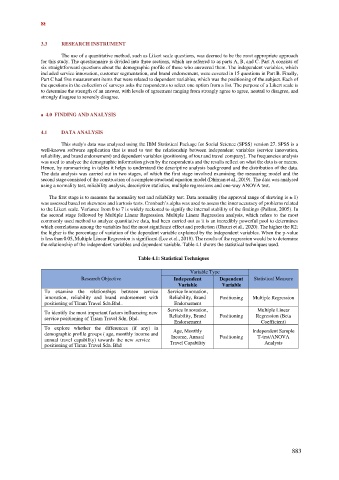 the relationship of the independent variables and dependent variable. Table 4.1 shows the statistical techniques used.