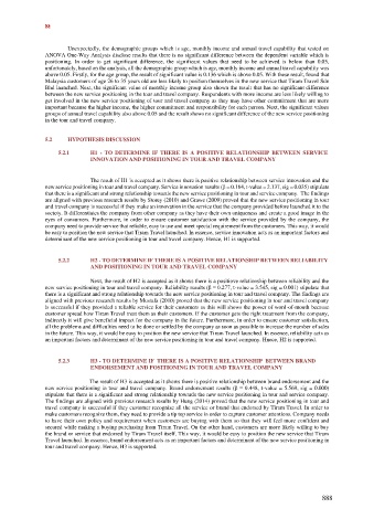 new service positioning in tour and travel company. Service innovation results (β = 0.184, t-value = 2.137, sig = 0.035) stipulate