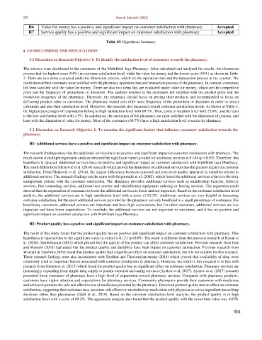 result showed that customers were satisfied with the pharmacy operation time and transaction process of the pharmacy. In contrast, customers
