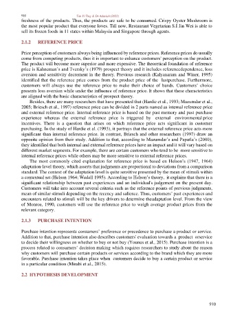and external reference price. Internal reference price is based on the past memory and past purchase
