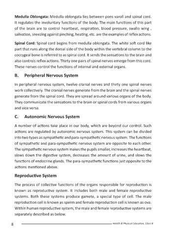 Spinal Cord: Spinal cord begins from medulla oblongata. The white soft cord like