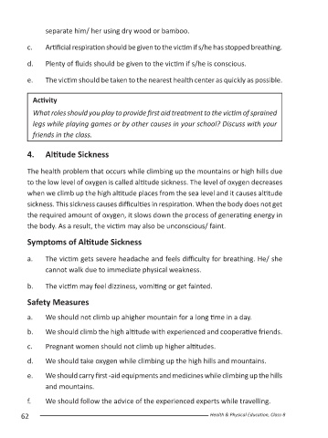 e. We should carry first -aid equipments and medicines while climbing up the hills