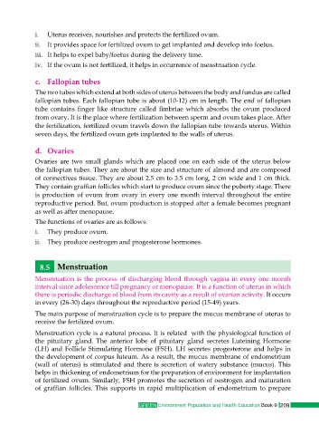 i. Uterus receives, nourishes and protects the fertilized ovum.