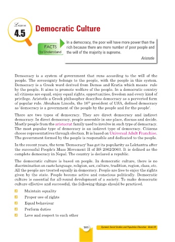 All the people are treated equally in democracy. People are free to enjoy the rights