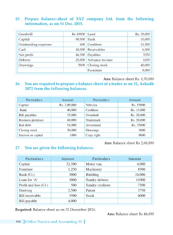 16. You are required to prepare a balance sheet of a trader as on 31, Ashadh