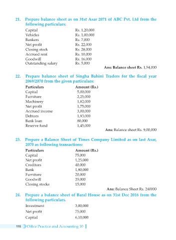 21. Prepare balance sheet as on 31st Asar 2071 of ABC Pvt. Ltd from the