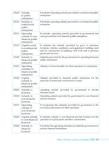 25112 Capital susidy It includes the subsidy provided by govt. to purchase