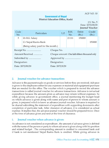 given, is prepared which is know as advance journal voucher. Advance is required to