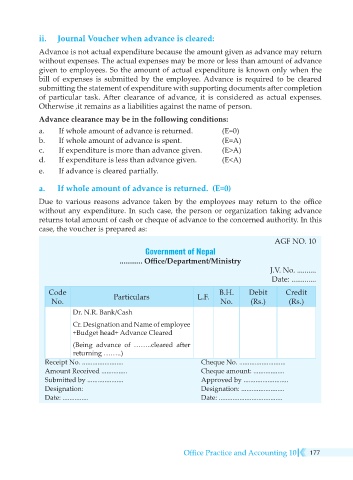 returns total amount of cash or cheque of advance to the concerned authority. In this