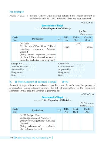 advance in cash Rs. 12000 as tour to Illam has been canceled.
