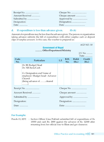 taking advance submits the bill of expenditure with either surplus cash or deposit