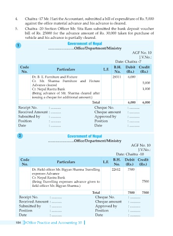 4. Chaitra -17 Mr. Hari the Accountant, submitted a bill of expenditure of Rs. 5,000
