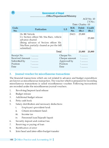 3. Journal voucher for miscellaneous transactions