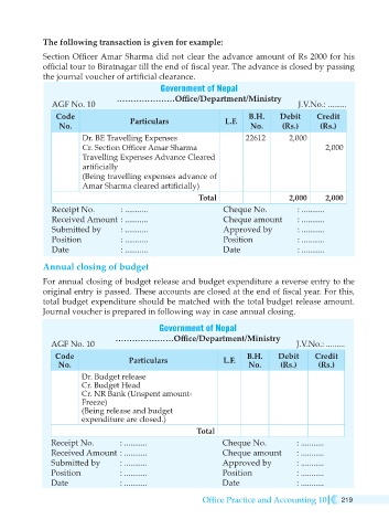 official tour to Biratnagar till the end of fiscal year. The advance is closed by passing
