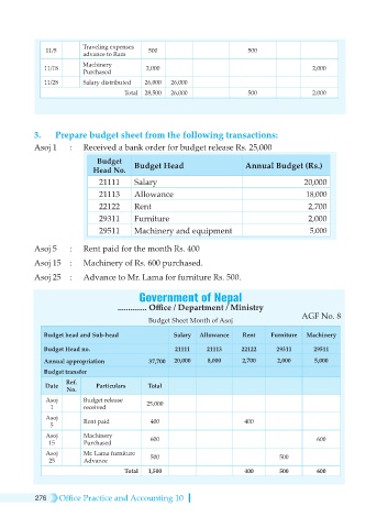 Budget head and Sub-head Salary Allowance Rent Furniture Machinery