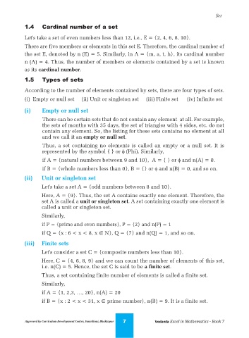 (i) Empty or null set (ii) Unit or singleton set (iii) Finite set (iv) Infinite set