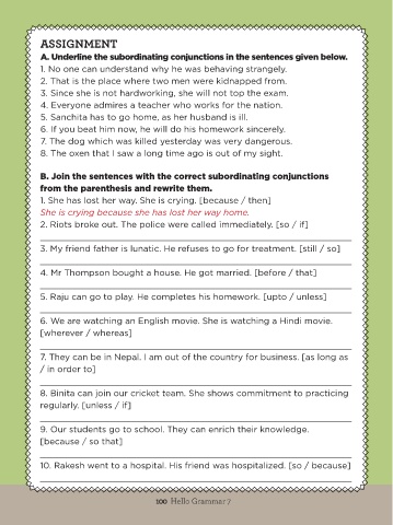 A. Underline the subordinating conjunctions in the sentences given below.
