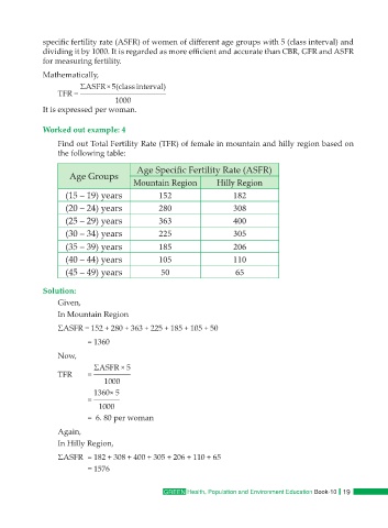 specific fertility rate (ASFR) of women of different age groups with 5 (class interval) and