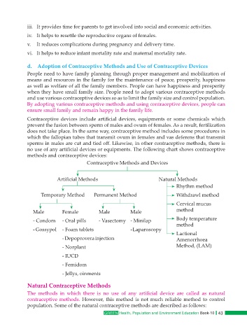 d. Adoption of Contraceptive Methods and Use of Contraceptive Devices