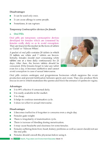 Oral pills contain oestrogen and progesterone hormones which suppress the ovum
