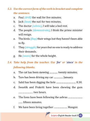5.4. Take help from the teacher. Use ‘for’ or ‘since’ in the