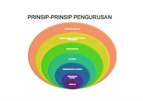 PRINSIP-PRINSIP PENGURUSAN HIERARKI JAWATAN MENGUTAMAKAN KEPENTINGAN ORGANISASI KEBERSAMAAN AUTORITI KESEIBANGAN LAYANAN PENURUNAN KUASA DISIPLIN
