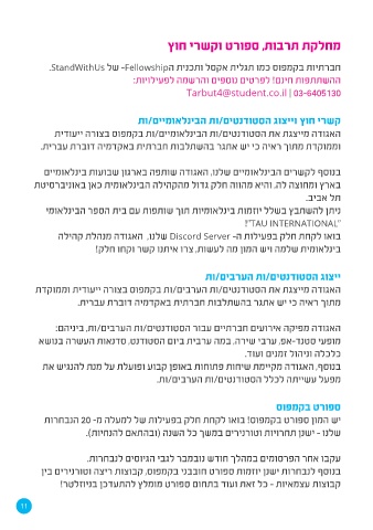חברתיות בקמפוס כמו תגלית אקסל ותכנית ה -Fellowshipשל .StandWithUs