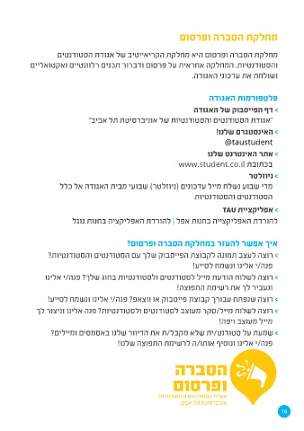 מחלקת הסברה ופרסום היא מחלקת הקריאייטיב של אגודת הסטודנטים