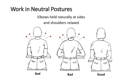 Work in Neutral Postures Elbows held naturally at sides and shoulders relaxed Bad Bad Good