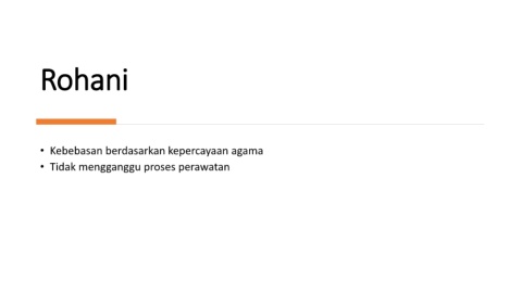 Rohani • Kebebasan berdasarkan kepercayaan agama • Tidak mengganggu proses perawatan