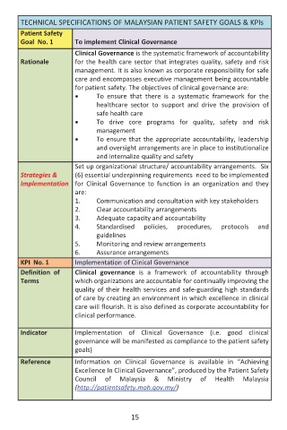 TECHNICAL SPECIFICATIONS OF MALAYSIAN PATIENT SAFETY GOALS & KPIs
