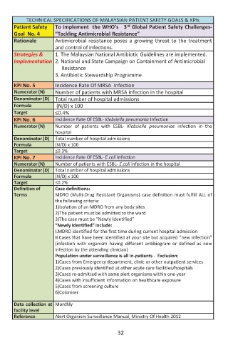 TECHNICAL SPECIFICATIONS OF MALAYSIAN PATIENT SAFETY GOALS & KPIs