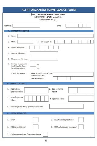 ALERT ORGANISM SURVEILLANCE FORM 35