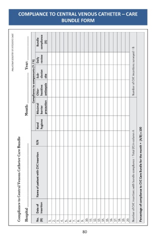 COMPLIANCE TO CENTRAL VENOUS CATHETER – CARE BUNDLE FORM 80