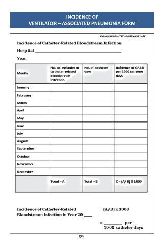 INCIDENCE OF VENTILATOR – ASSOCIATED PNEUMONIA FORM 89