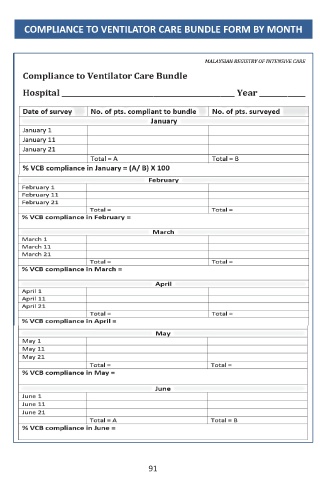 COMPLIANCE TO VENTILATOR CARE BUNDLE FORM BY MONTH 91